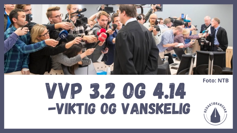 Onsdag arrangerte NR digital redaktørlunsj. Temaet var punkt 3.2 og 4.14 i Vær Varsom-plakaten og hvordan man skal unngå å bli felt på disse punktene.