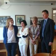 Kristine Foss (fra v.), Kjersti Løken Stavrum og Siri Gedde-Dahl var blant representantene fra NPs offentlighetsutvalg som møtte Sivilombudsmann Aage Thor Falkanger.